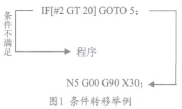 一般的編程中允許對變量命名,用戶宏程序不可以,一個變量需用“#”號和后面的變量號指定。變量號可以是數(shù)值或表達(dá)式,但必須注意此時表達(dá)式必須封閉在“[]”中。例如:#1(主要用于A類宏指令);#[#1+#3+5]若#1=100,#3=2,則該變量表示#107。