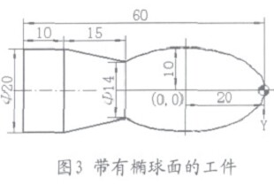 一帶有橢球面的工件(如圖3所示)。長軸a=40㎜,短軸b=20㎜。