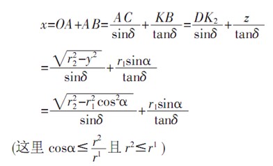 , 且其中心軸線與圓錐中心軸線相交 坐標(biāo)如圖 2 所示, 則圓柱曲面方程[4]為: