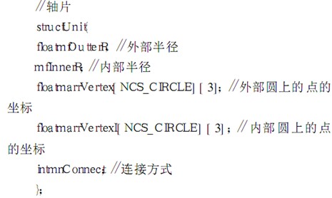 在進(jìn)行三維動(dòng)畫顯示之前,我們必須對(duì)軸的模型加以確定,因?yàn)檐囅鲿r(shí)需要改變軸的尺寸,因此必須用一種方法來記錄軸上面的尺寸. 用下面的結(jié)構(gòu)體來表達(dá)軸上的尺寸信息: