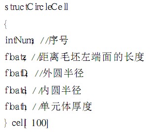 分析數(shù)控車床加工的特點(diǎn): 數(shù)控車床的毛坯通常為棒料,為回轉(zhuǎn)體零件,而且刀具做的只是X方向和Z方向上的二維運(yùn)動(dòng). 因此在本系統(tǒng)的仿真算法中,首先將毛坯進(jìn)行細(xì)分為單位厚度的小圓柱單元,小圓柱單元的厚度根據(jù)仿真所需的精度和顯示效果來決定[ 4]小圓柱單元的具體的數(shù)據(jù)結(jié)構(gòu)為: