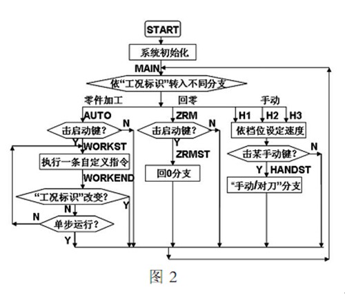 圖 2 為系統軟件總框圖 其中 工況標識 由外部中斷 0 服務程序設定或由上位機傳來 所謂主控軟件指圖 2 中標號 WORKST 到標號 WORKEND 部分