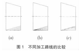上述三種切削路線中, 如果起刀點相同, 則平行法車錐體路線最合理, 生產中也常用此法進行加工。